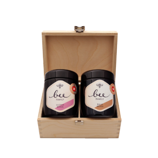 Mit unserem Honigduo «Swiss Edition» präsentieren wir unseren beliebten Schweizer Blütenhonig gemeinsam mit unserem Schweizer Waldhonig in der Bee-Family Holzbox. Das spannende Duo heimischer Spitzenhonige gibt einen Einblick in das geschmackliche Spektrum Schweizerischen Honiggenusses. Während der cremige Blütenhonig mild und sanft den Gaumen erfreut, dominieren beim zähfliessendem Waldhonig kraftvolle Geschmacksnoten.
